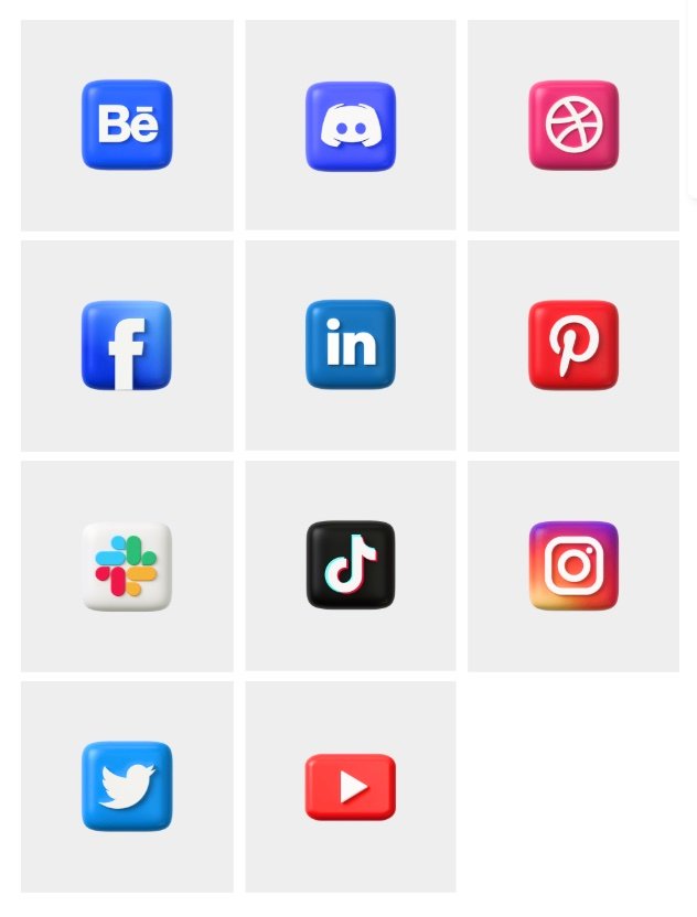 Hello! Discord, Facebook, LinkedIn, Instagram, TikTok, and Twitter, among others. All of them are present. An ideal complement to your innovative promotional projects or social media campaigns. incredibly high-resolution renders with appropriate lighting. Completely free. Enjoy after downloading!